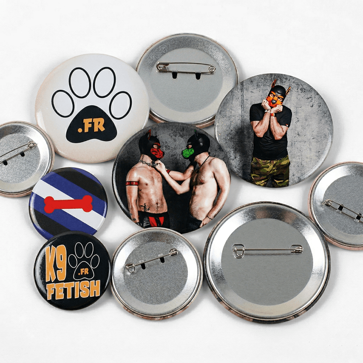 Badges personnalisables K9fetish – 3 tailles (25/32/58 mm) – Style LGBT+ & fétichiste